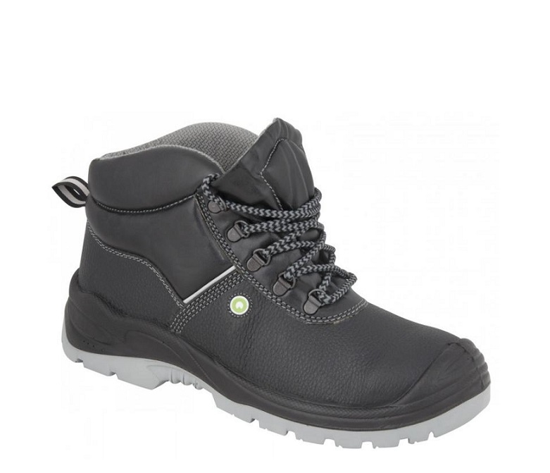 teljes bőr boka biztonsági cipő acél hegyével és fóliával fényvisszaverő felület a felső részén vízálló kezelés PU2D talp, ellenáll az olajoknak, üzemanyagoknak és 110 ° C-os kontakthőnek, antisztatikus anyag: bivaly bőr talp : PU2D szabvány : EN 20345 méretek: 36–48 szín: fekete