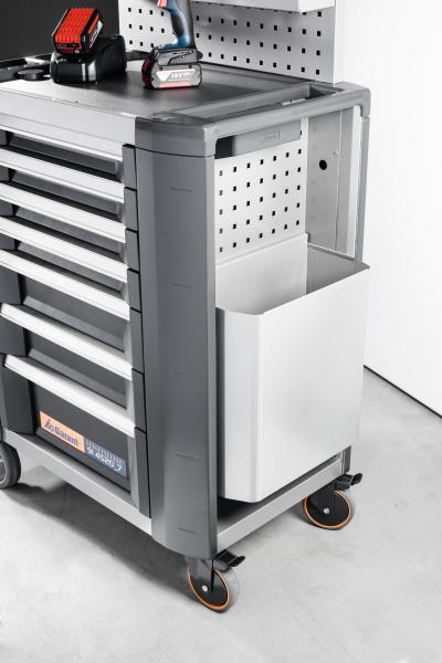 - Sajtolt acél központú kerekek fekete gumiabronccsal a termék hosszú élettartama és általános strapabírósága érdekében.
