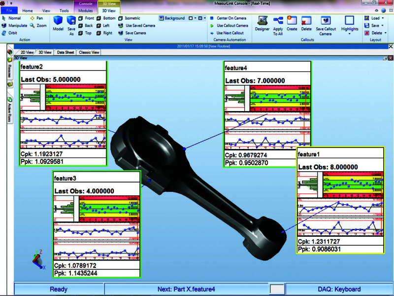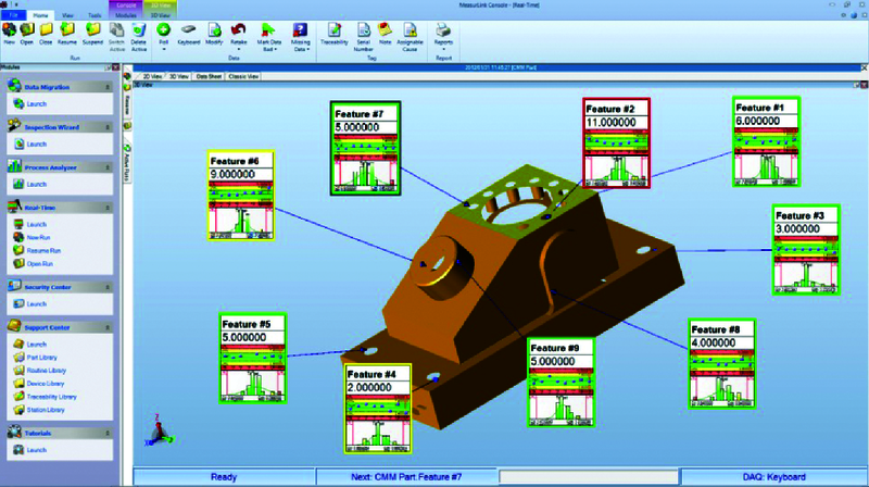 Leírás On-line Real-Time mérési adatgyűjtő rendszer Mérési adatok bevitele és tárolása szemléletes grafikus megjelenítés (3D Hoops alapú) támogatásával. A Hoops 3D fájlok a legtöbb CAD rendszer által támogatottak, amelyek beolvasásával a mért mdb 3Ds képe jeleníthető meg. Adatátvitel közvetlenül a Mitutoyo berendezésekről: Koordináta mérőgépek Alakvizsgáló rendszerek Digitális képfeldolgozó rendszerek Adatimport lehetőségek: ASCII QMD (xml alapú) Jellemzők: Méréses és minősítéses jellemzők Real-time grafika Futás diagram Szabályzó kártyák Hisztogram Statisztika Felhasználói egyedi információk Teljes riport minták Adatszűrés 3D nézet Flexibilis erdményablakok Irányítás Támogatott adatátviteli módok: billentyűzet, RS232, USB , Mitutoyo DDE, ASCII, QMD. Jellemzők Leírás: MeasurLink 8 Real-Time Professional 3D Edition