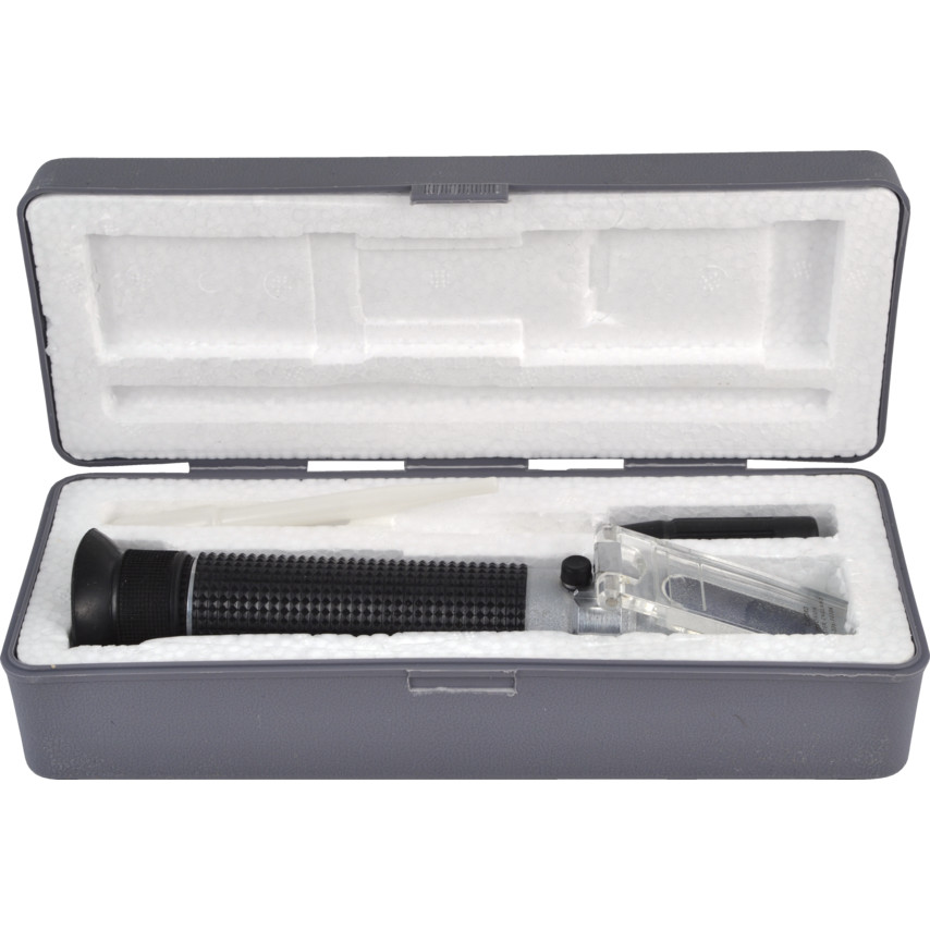 Az olaj koncentrációjának meghatározásához vizes emulziókban és átlátszó oldatokban, mint a gépműhelyekben használt hűtőfolyadék. A megfelelő keverési arány fenntartása a hűtőrendszerekben alapvetően fontos, hogy biztosítsuk a forgácsolószerszámok optimális teljesítményét, megvédjük a gépet és a munkadarabot a korróziótól, és csökkentsük a vízben oldott olaj nem megfelelő koncentrációjából adódó munkaegészségügyi kockázatot, valamint biztosítsuk a hűtőfolyadék gazdaságos felhasználását. Specifikációk: ND tartomány 1.333 - 1.356, Bx: 0 - 15% Szemlencse nagyítása: 11x Teleszkópos lencse nagyítása: 4x Pontosság: ± 0.0003, ± 0.2% Rácsérték: 0.0005, 0.2% Méretpontos minőségi fémdobozban, kalibráló csavarhúzóval és használati utasítással.