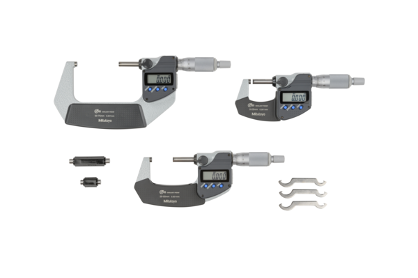 3-ponton mérő Digimatic furatmérő eszköz. Mindegyik készlet rendelkezik egy alaptesttel és cserélhető mérőfejekkel.