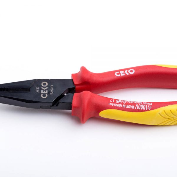 Anyag:Különleges összetételű szerszámacél,kovácsolva és teljes egészében nemesítve.Vágó élek indukciósan edzve. A fogószárak kétkomponensű, kézbarát, csúszásmentes műanyag nyelekkel ellátva. 10 000 V-on bevizsgálva és 1 000 V váltakozó és 1 500 V egyenfeszültség alatti munkához.