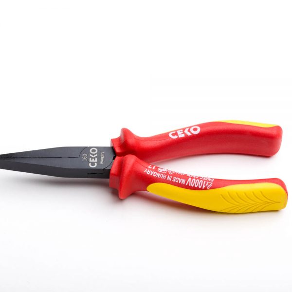 Anyag:Különleges összetételű szerszámacél,kovácsolva és teljes egészében nemesítve.A fogószárak kétkomponensű kézbarát,csúszásmentes műanyag. 10 000 V-on bevizsgálva és1 000 V váltakozó és 1 500 V egyenfeszültség alatti munkához.