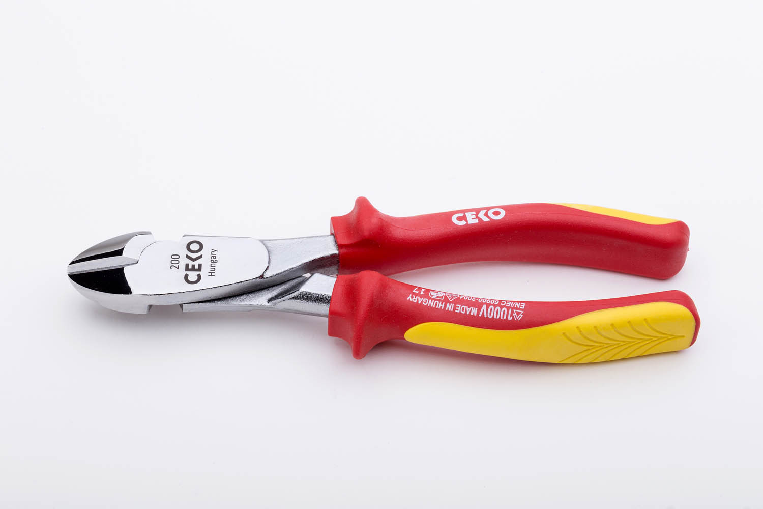 Anyag:Különleges összetételű szerszámacél,kovácsolva és teljes egészében nemesítve.Vágó élek indukciósan edzve. A fogószárak kétkomponensű, kézbarát, csúszásmentes műanyag nyelekkel ellátva. 10 000 V-on bevizsgálva és 1 000 V váltakozó és 1 500 V egyenfeszültség alatti munkához.