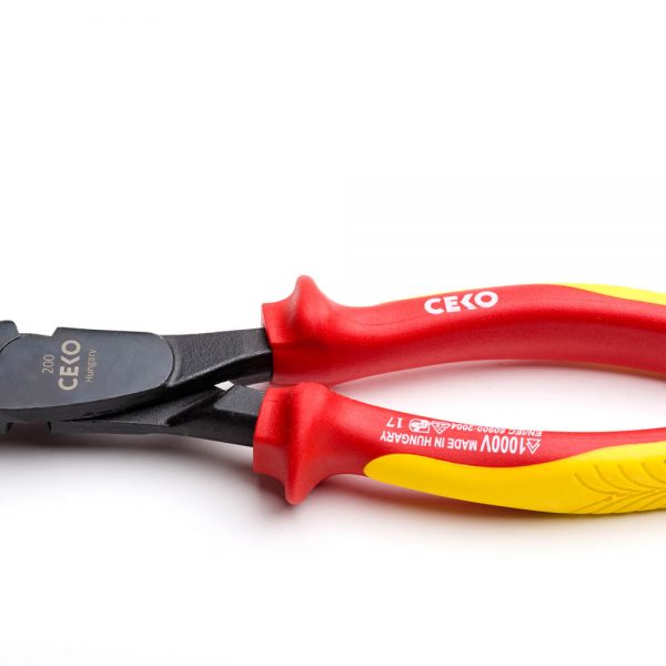 Anyag:Különleges összetételű szerszámacél,kovácsolva és teljes egészében nemesítve.Vágó élek indukciósan edzve. A fogószárak kétkomponensű, kézbarát, csúszásmentes műanyag nyelekkel ellátva. 10 000 V-on bevizsgálva és 1 000 V váltakozó és 1 500 V egyenfeszültség alatti munkához.