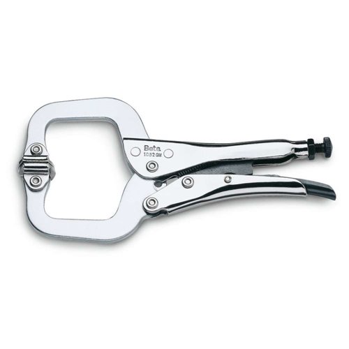 Króm-vanádium c-fogó széles és mély pofaprofillal. Átlépi az akadályokat a szakaszok szilárd rögzítéséhez.
