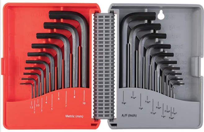 Metrikus - 10 darabos készlet tartalma: 1.5, 2, 2.5, 3, 4 , 5, 6, 7, 8 és 10mm. Inch - 10 darabos készlet tartalma: 1/16”, 5/64”, 3/32”, 1/8”, 5/32”, 3/16”, 7/32”, 1/4”, 5/16” és 3/8”.