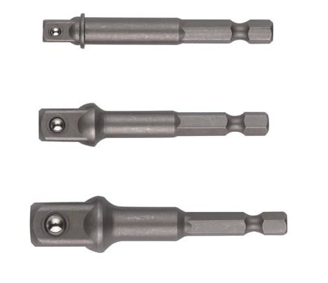Tartalma 3 db-os készletl: 1/4” hatlapról 1/4” négyszögre, 1/4” hatlapról to 3/8” négyszögre, 1/4” hatlapról to 1/2” négyszögre