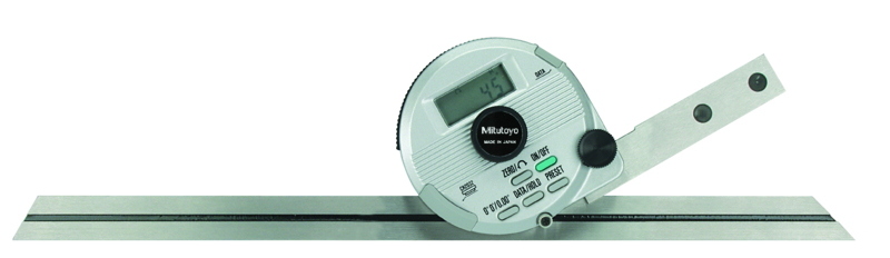 Leírás Digimatic univerzális szögmérő jellemzői: Könnyen leolvasható kijelző. Automatikus kikapcsolás 10 min után. Fix referencia pont a könnyű beállításhoz. A mérőpenge a teljes hossz mentén elcsúsztatható és rögzítető. Finomállítás a precíziós szögbeállításhoz. Magasságmérőkhöz csatlakoztatható rögzítő adapteren keresztül. Jellemzők Pengehossz: 150 mm Tömeg: 624 g Ismételhetőség: 1' (0.01°) Max. megengedhető hiba: 2' (0.03°) Elem élettartam: ~ 2.000 óra Tartozék: Dobozban, elemmel Kijelző: LCD, karakter magasság 6,5mm Szállítva: Dobozban, elemmel szállítva ON/OFF: Igen DATA / HOLD: Igen Adatkimenet: Igen Nullázás: Igen PRESET: Igen Szög DMS/Decimális: Igen Coll-mm: Metrikus