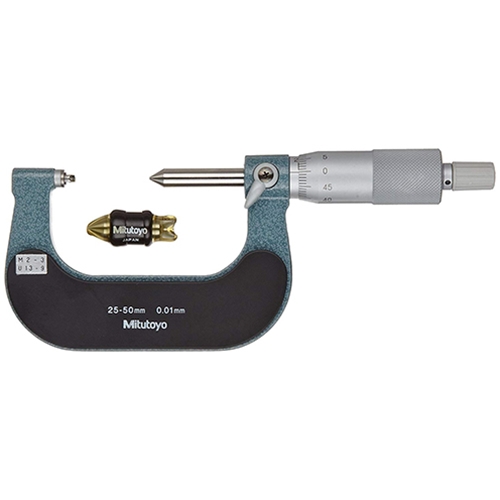 Mitutoyo ülékek és tapintócsúcsok párban szállítva a 126/326 Sorozat menetmérő mikrométereihez.