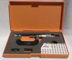 Mitutoyo ülékek és tapintócsúcsok párban szállítva a 126/326 Sorozat menetmérő mikrométereihez.