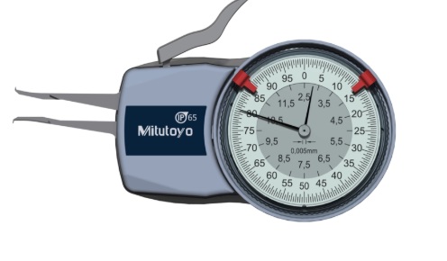 Mitutoyo karos mérőóra belső mérésre, amely szögmérőként is használható, beállító gyűrűvel vagy mikrométerrel felszerelve. A mérőóra rugós feszítésű és pont kapcsolatot létesít állandó mérőerővel.