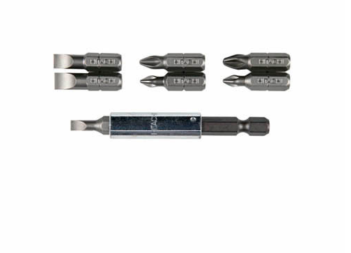 Bit betét készlet műanyag tokban. A tokban található bit betétek (6,3x25mm) egy mozdulattal elérhetővé válnak, a tok markolatnak is használható. Tartalma: T10, T15, T20, T25, T30, T40 és mágneses bit befogó. Penge anyaga: króm-molibdén-vanádium acél.