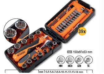 • 2 db 7 szögű dugókulcs: Ø 14 mm - 22 mm