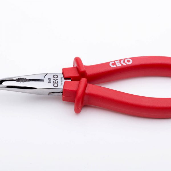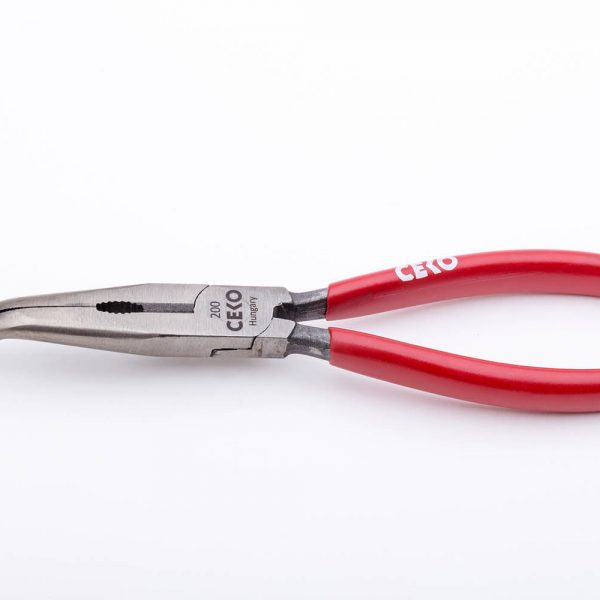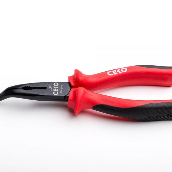 Különösen hosszú, félkerek-hegyes pofák. Indukciósan edzett élek (kb. 60 HRC), alkalmas kemény és lágy huzalokhoz. Belül recézett pofák.