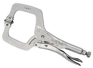 Króm-vanádium c-fogó széles és mély pofaprofillal. Átlépi az akadályokat a szakaszok szilárd rögzítéséhez.