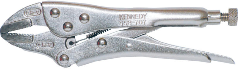 Görbe pofás reteszelő markolatkulcsok hengerelt króm-vanádium acél testtel és kovácsolt, edzett acélból készült, bukócsapokkal gyártott. Ezeket a markolatos villáskulcsokat kifejezetten a kör alakú tárgyak megfogására tervezték.