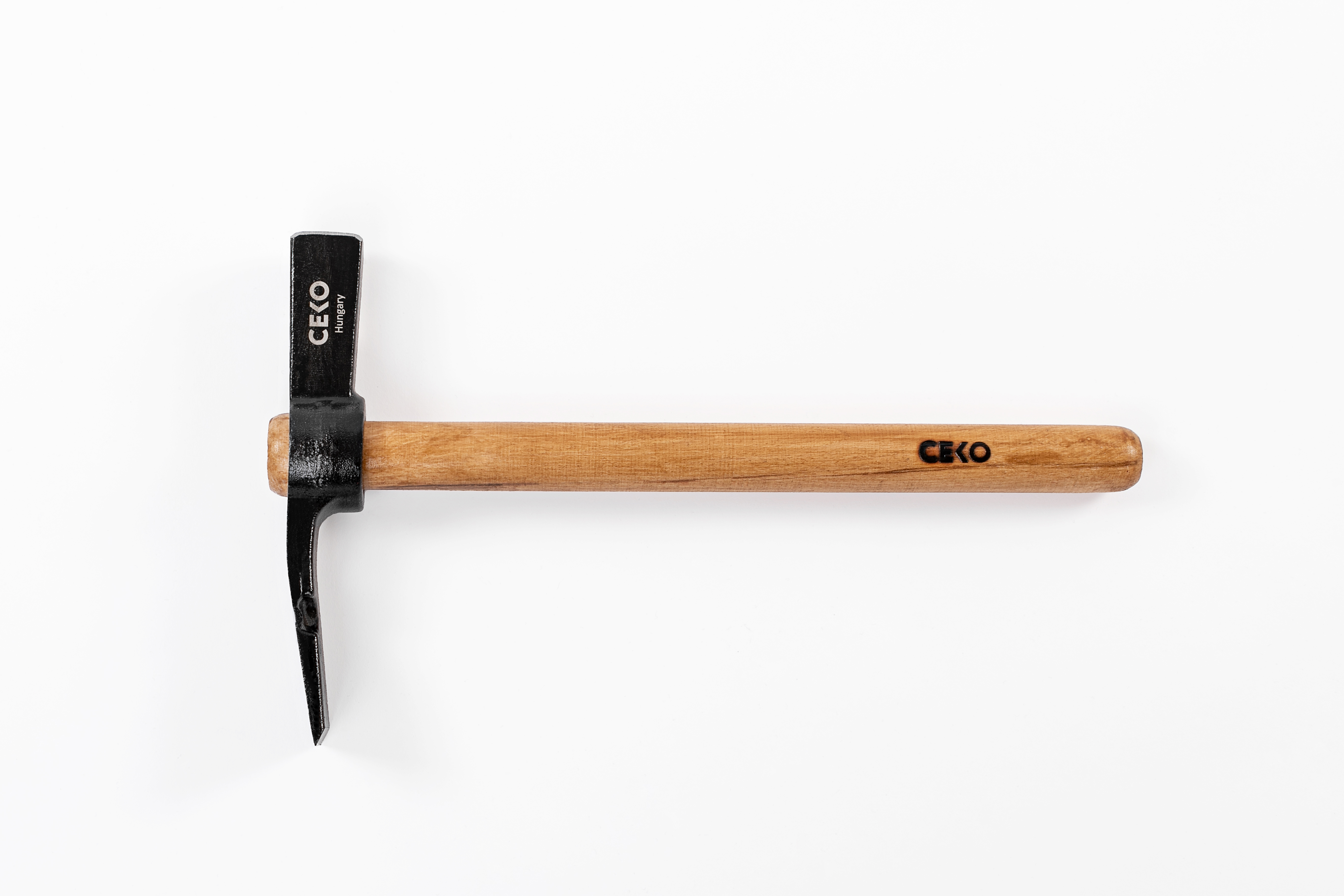Anyag:Különleges összetételű szerszámacél, kovácsolva, ütőfelület edzve, festve.Lakkozott fa nyéllel ellátva.