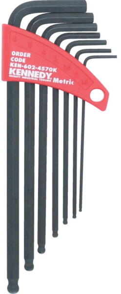 Ezek az L-alakú, angolszász méretű hatszögkulcsok ideálisak a hatlapfejű foglalatokkal végzett általános szerelési munkákhoz. A DIN 911 szabványnak megfelelően teljesen edzett szénacélból gyártott, minőségi duktilis kulcsok precíziós vágott végekkel és pontos, angolszász méretű végekkel, amelyek biztosítják a maximális foglalat érintkezést. A gömbvég akár 30°-os munkahajlítást is lehetővé tesz. Minden kulcs rendelkezik egy hosszú karú, golyós meghajtású és egy rövid karú, sima véggel. Fekete, oxidált kivitelben.