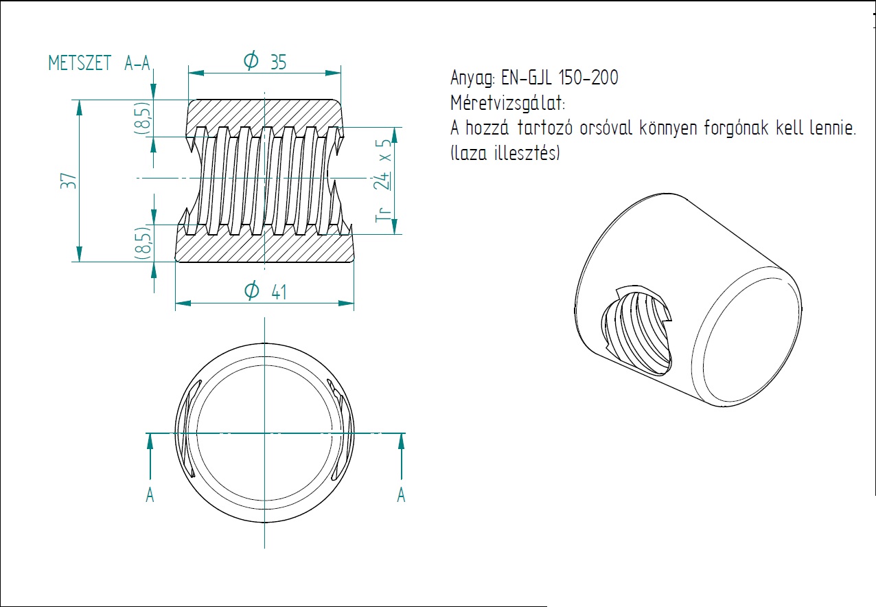 Nemesített acél orsó , öntöttvas anya , edzett pofa.