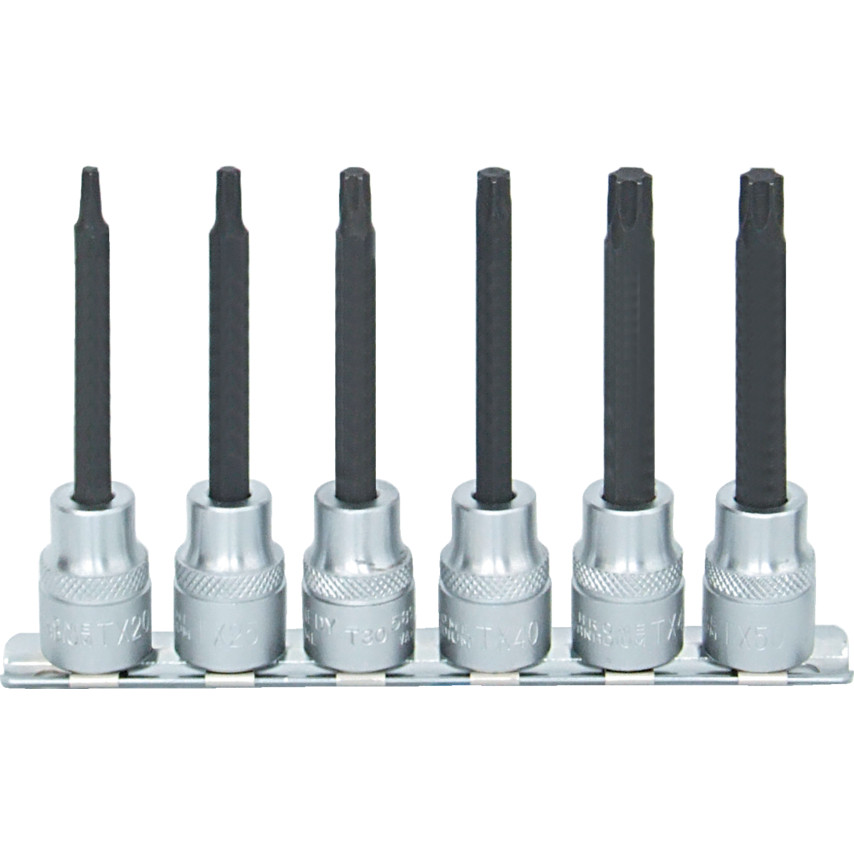 Ezek a bitkészletek ideálisak a mélyen ülő csavarokhoz való hozzáféréshez, amelyeket az extra tapadás érdekében bordázott testtel láttak el, és professzionális használatra alkalmasak. S2 króm-vanádium acélból készültek, és tárolósínre szerelve szállítják. Megvásárolható hatszögletű vagy TX bitekkel, tetszés szerint.