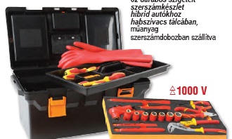 Mennyiség/megnevezés Beta N. 1 1/2”-os irányváltós racsni 920MQ/55A 1 Egyoldalas csillagkulcs 10-12 mm 89MQ 1 VDE-mágneses betéttartó bimateriál-nyéllel  1/4" 850MQ 10 10 csavarhúzóbetét és mágneses betéttartó, műanyag dobozban  T7-T8-T9-T10-T15-T20-T25-T27-T30-T40 860TX/A10 7 1/2”-os hatlapú dugókulcs  8-10-12-13-14-17-19 mm 920MQ/A 1 1/2”-os toldó 125mm 920MQ/21 1 1/2”-os toldó 250mm 920MQ/22 1 Vízpumpafogó, stifttel állítható, szigetelt, 1000V 250mm 1048MQ 250 1 Kombinált fogó 1000V  180mm 1150MQ 1 Hajlított extra hosszú laposfogó  160mm 1164MQ160 2 Phillips® - csavarhúzó 1000V  4.5X80-6X100mm 1272MQ 3 1000 V - os szigetelt csavarhúzó  3X100-4X100-5.5X125 1274MQ 1 Szigetelt védőkesztyű G2 1995MQ/G2 1 Műanyag szerszámos láda, hosszú kivitel kivehető betéttel és tálcák kis tárgyak elhelyezésére CP15L