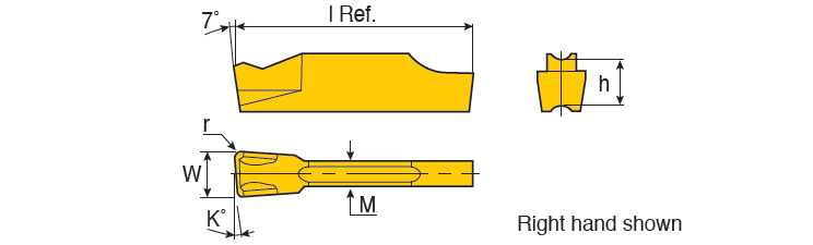 Cutting Width (CW) 3 mm Alkalmazás | Ext. Grooving | Face Grooving | Inserts | Int. Grooving | Parting | Corner Radius (RE) 0.2 mm Alkalmazható anyag | Acél | Rozsdamentes acél | Erősen ötvözött hőálló acélok | Overall Length (OAL) 19.6 mm Magasság 4.7 mm Forgácsolóél anyaga Carbide Bevonat TiAlN+TiN Test anyaga Carbide Minőség TT9080