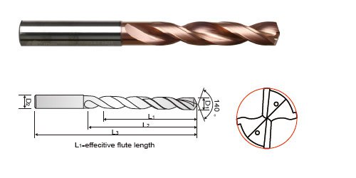 - 3xD Tömör keményfém csigafúró hűtőcsatornával