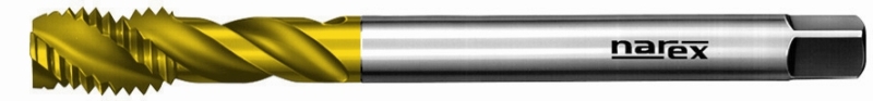 Csavarthornyú gépi menetfúró HSSE alapanyag TiN bevonattal. Szerkezeti és melegen hengerelt acélok 800 N/mm2 -ig. Öntöttvas lágy aluminium és ötvözetei >10% Si rövid és hosszú forgácsú rézötvözetekhez.