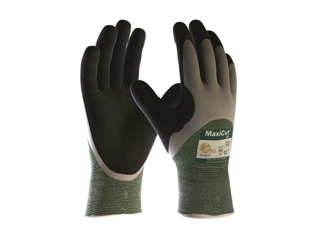 nedvességtaszító és vágásálló kesztyű a vágások elleni védelmet és az olajos tárgyak jó fogását egyaránt biztosítja utólagos mechanikus- és hő elleni védelemre szolgáló bőr erősítéssel is kapható mártott - félig, a tenyéren bőr anyaga:vágásálló szál + lycra + PES mártott:nitril hab + hasított marhabőr szabvány:EN 388: 4342C, EN 407: X1XXXX szín:zöld vastagság:2,5 mm