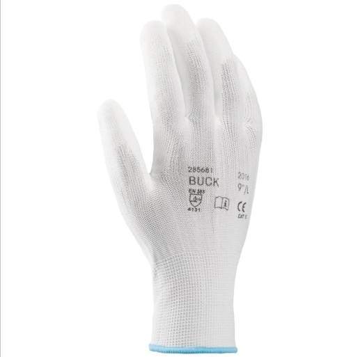 A BUCK kesztyű hatékonyan ötvözi a poliésztert és a poliuretánt oly módon, hogy a poliészter szálak finom kötését tompított poliuretán réteggel impregnálják. A kesztyű anyaga rugalmas, könnyen feltehető, és tökéletesen alkalmazkodik az egyes ujjak teljes hosszában és a tenyér körül. A poliuretán réteg lefedi az ujjak és a tenyér alsó részét, és javítja a tapadási szilárdságot, megakadályozza a tartott tárgy vagy eszköz csúszását. Ugyanakkor hatékonyan megakadályozza a kéz finom bőrének sérüléseit. A poliuretán kihasználja a nagy kopásállóságot. A rugalmas anyag megfelelő szigetelő réteget hoz létre a bőr és a külső behatások között. Bizonyos mértékig nemcsak a mechanikai sérüléseket, hanem a fröccsenéseket és szennyeződéseket is megakadályozza. A kesztyűréteg megbízhatóan védi a kezét, ugyanakkor csak egy vékony akadályt hoz létre, hogy ne korlátozza az ujjak rugalmasságát vagy az érzékenységet.