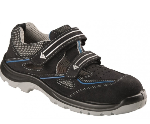 biztonsági szandál laminált orral fém részek nélkül ESD anyaga: mikroszál, levegőző textil talp: PU/PU szabvány: EN ISO 20345:2011 S1 SRC; EN 61340-4-3:2018 szín: kék méretek: 35 - 48 súly: 492 g (a fél pár 42-es méretű cipőre vonatkozik)