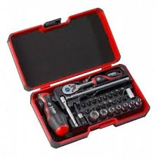 Az erős műanyag dobozban minden szerszámnak rögzített helye van. Tartalmazza a legfontosabb biteket, dugókulcsokat 4-13 mm és ezek behajtóit.